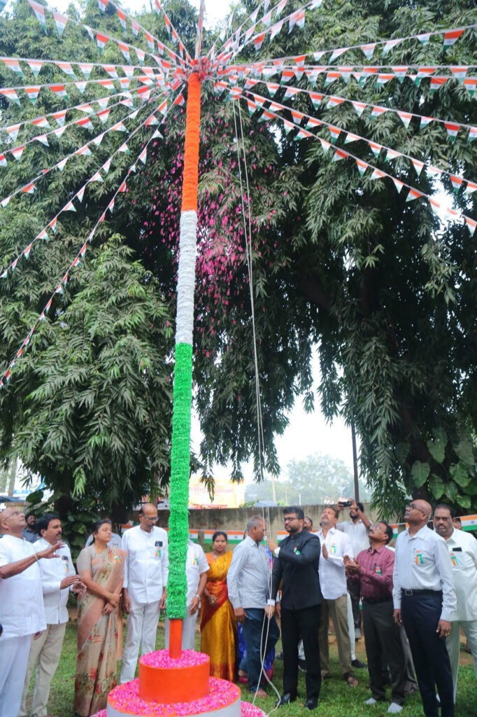 జెండా ఆవిష్కరిస్తున్న మేయర్ రవీంద్ర, కమిషనర్ మయూర్ అశోక్
