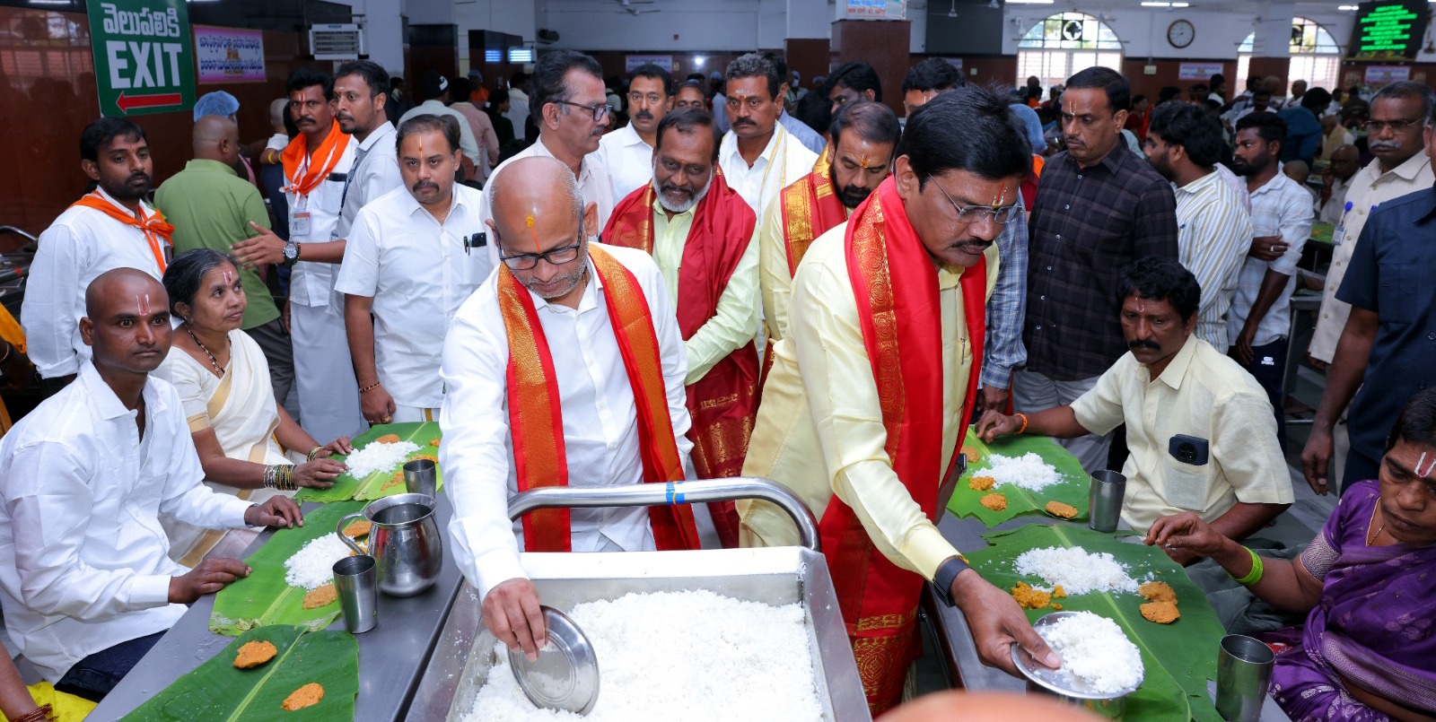భక్తులకు అన్న ప్రసాదాన్ని వడ్డిస్తున్న భాష్యం రామకృష్ణ