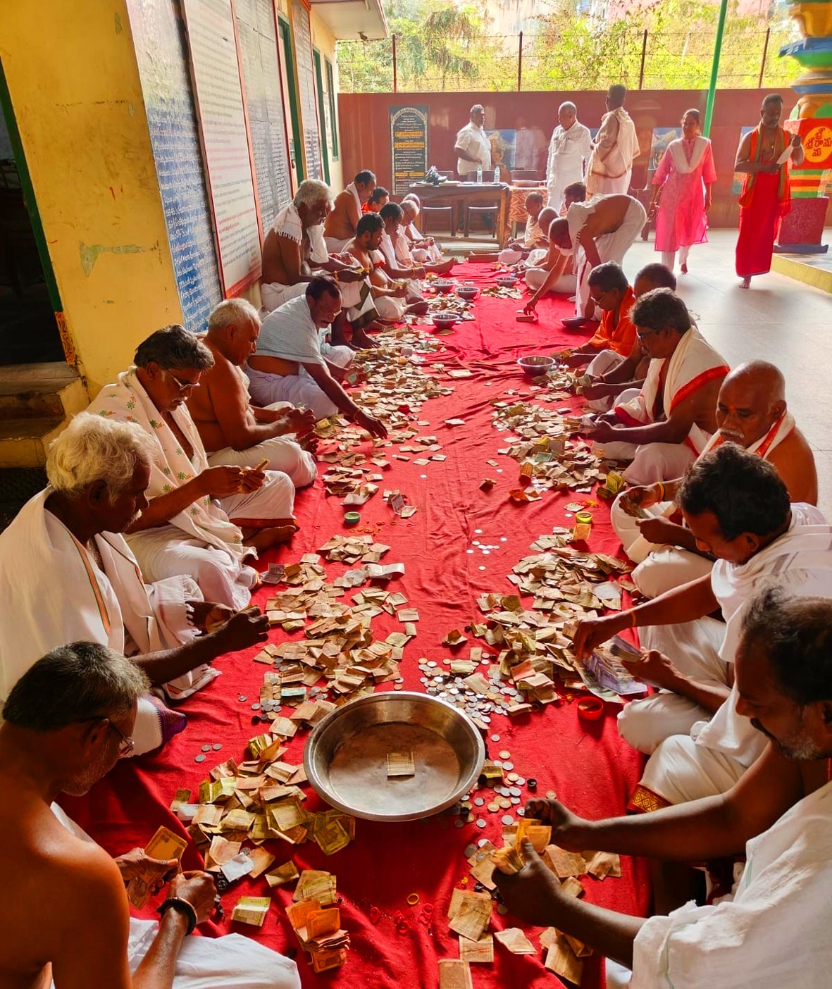 మూడు దేవస్థానాలకు మూడు నెలల పదిహేను రోజులకు రూ.9.70 లక్షల ఆదాయం వచ్చిందన్నారు. పది దుబాయ్ డాలర్లు, 33 అమెరికా డాలర్లు, 28 గ్రాముల బంగారం, 918 గ్రాముల వెండి వస్తువులు కానుకల రూపంలో హుండీల ద్వారా వచ్చాయని పేర్కొన్నారు. లెక్కింపులో నారాయణ రోరవల్ కూర్ సభ్యులు, దేవస్థానాల సిబ్బంది పాల్గొన్నారు.